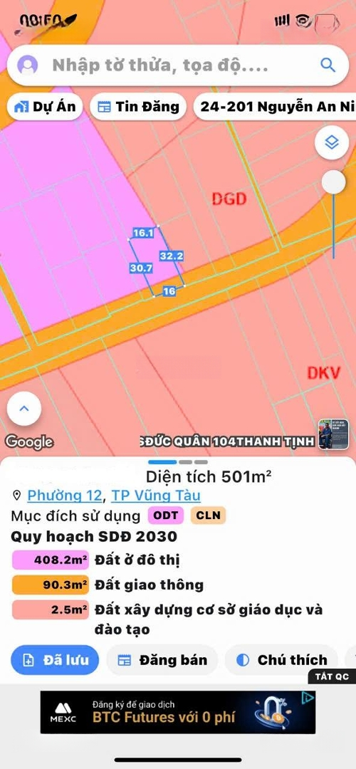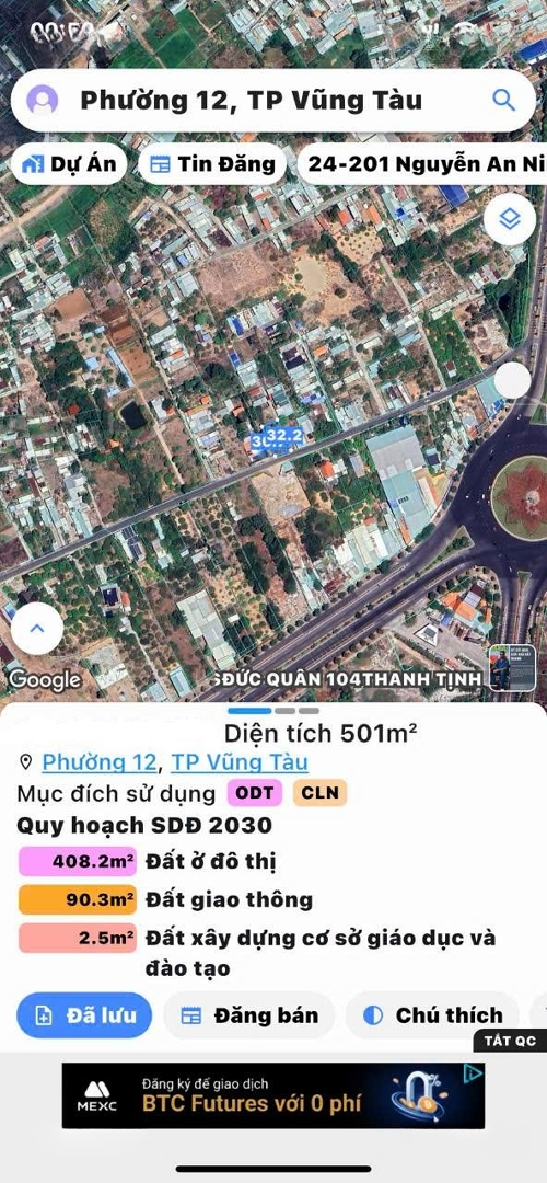Bán đất xây biệt thự nhà vườn Nguyễn Gia Thiều, Phường 12, TP. Vũng Tàu. - Diện tích: 500m² (ngang 16m * dài 32m). - Thổ cư: 150m² đất quy hoạch phủ hồng. - Đường nhựa 10m ô tô ra vào thoải mái. - Sổ riêng, pháp lý rõ ràng. - Quỹ đất lớn, phù hợp xây biệt thự vườn, villa nghỉ dưỡng, homestay. - Khu vực thoáng mát, hạ tầng hoàn chỉnh, dân cư ổn định. - Hướng đất đẹp, đường rộng, vị trí tiềm năng tăng giá. - Giá bán: 10 tỷ (bớt lộc cho khách thiện chí). * Vị trí : https://maps.app.goo.gl/bCDKUS1HxuuHiKtK9?g_st=ic - Liên hệ ngay : Mr Tiến Thành để xem đất và trao đổi trực tiếp chính chủ .Đặc điểm nổi bậtDiện tích :500m2Giá :10 tỷ