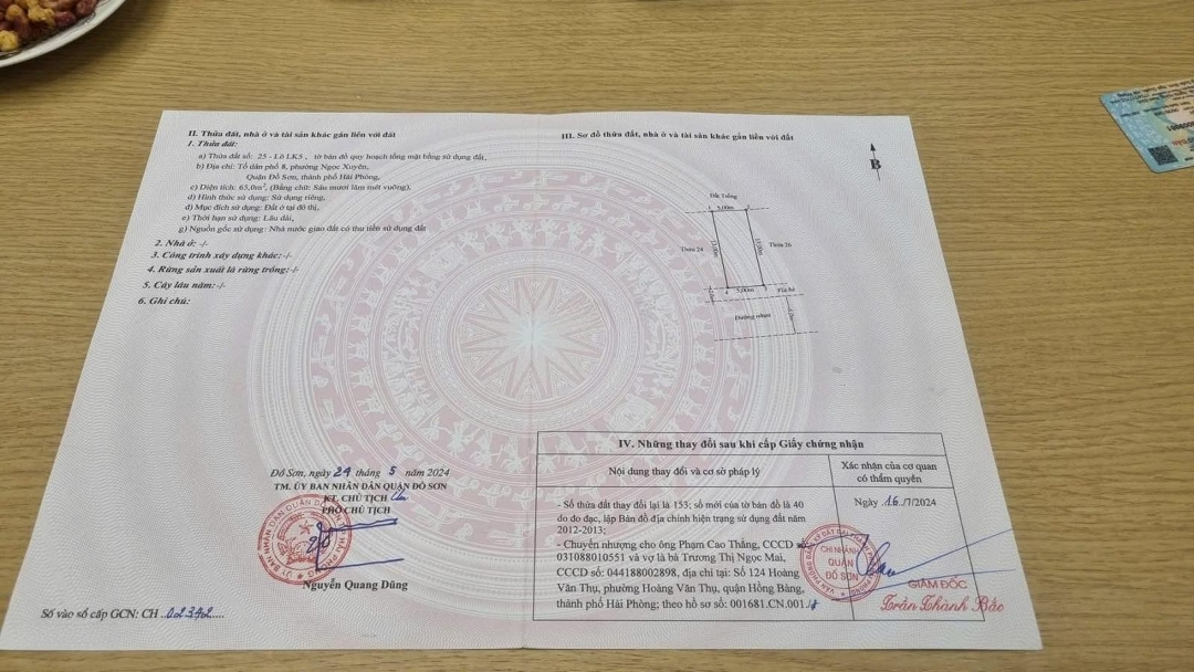 Bán đất 65m2 ngang 5m tại tái định cư mới Ngọc Xuyên, Quận Đồ Sơn đường rộng 12m vỉa hè đèn cao áp, dân cư đông đúc. - Diện tích: 65m2. - Ngang: 5m. - Gần ngay trung tâm quận vị trí thoáng mát, phù hợp xây nhà ở hoặc đầu tư cực kỳ hợp lý, gần trung tâm quận Đồ Sơn, gần THCS, tiểu học, mầm non, chợ Đình Đoài, chợ Cầu Vồng, cách biển chỉ 2 phút. Trung tâm du lịch Quốc Tế Đồ Sơn đang phát triển đầy tiềm năng sinh lời cao. - Khu vực dân cư đông đúc, văn minh,... Giá chỉ: 2tỷ3. Liên hệ ngay để biết thêm chi tiết. (Thanh Hằng).Đặc điểm nổi bậtDiện tích :65m2Mặt tiền :5mGiá :2,3 tỷĐường vào :10m