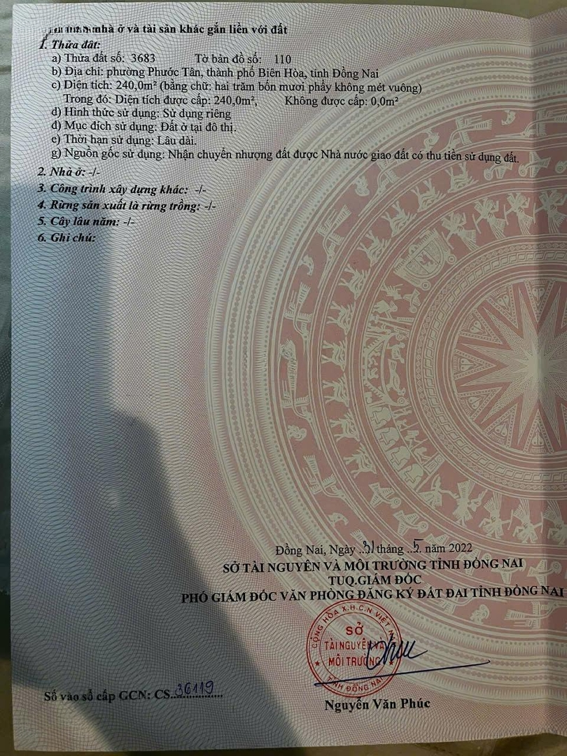 BÁN ĐẤT BIỆT THỰ BIÊN HOÀ NEW CITY SIÊU ĐẸP HOT HOT - Bán Đất Nền Biệt Thự Dự Án Biên Hoà New City 12m x 20m = 240m2. Full thổ. Hướng ĐN. - Nền đẹp, khu Phú Gia trung tâm dự án, ngay phía sau là kênh đào, phía trước ko cột điện, ko cống. - Xung quanh đã có nhiều biệt thự được xây dựng và về sinh sống - Ngay chân sân Golf Long Thành thoáng mát, view đẹp. Gần sân bay quốc tế Long Thành. Gần cao tốc Long Thành - Dầu Giây. Cơ sở hạ tầng vùng đang phát triển mạnh. Tiềm năng tăng giá mạnh khi sân bay quốc tế Long Thành đi vào hoạt động. - Giá mềm (chỉ bằng 1/3 Aqua World sát cạnh bên tiềm năng (pháp lý mới là HĐMB) Giá 5.4 tỉ (có thương lượng).Đặc điểm nổi bậtDiện tích :240m2Giá :5,4 tỷ