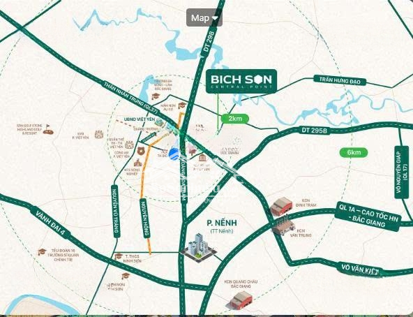 KHU DÂN CƯ BÍCH SƠN MỚI nằm ở lõi trung tâm của huyện Việt Yên - Bắc Ninh. Khi Bắc Giang và Bắc Ninh chính thức hợp nhất, Việt Yên nhanh chóng vươn lên thành tâm điểm kết nối liên vùng, hội tụ đầy đủ hạ tầng công nghiệp đô thị hiện đại. Từ Bích Sơn Central Point, mọi kết nối đều trong tầm tay - Chỉ 10 phút đến TP. Bắc Giang cũ - 15 phút tới TP. Bắc Ninh - 15 phút kết nối Vành đai IV - 15 phút tới cầu Hà Bắc 1 dẫn thẳng về Vinhomes Hòa Long - Đặc biệt, chưa đầy 60 phút đã có thể đến Hà Nội hay sân bay Gia Bình dự kiến hoàn thành năm 2026. Nằm trung tâm Việt Yên, dự án tiệm cận UBND, Quảng trường Thân Nhân Trung, hồ điều hòa, sân golf, sân vận động và quần thể văn hóa thể thao Việt Yên. Bích Sơn Central Point trung tâm kết nối, đón đầu làn sóng phát triển mới của miền Bắc. Chủ đầu tư: Công ty Cổ phần Phát triển xây dựng đô thị và Công nghiệp HLC Tổng diện tích: 5,25 ha Diện tích các lô từ: 80-85-88-90m2 Mặt tiền: 5m Mật độ xây dựng cực thấp 27% Đất nền không phải xây dựng Liên hệ : để xem dự anĐặc điểm nổi bậtDiện tích :85m2Mặt tiền :5mGiá :3,1 tỷĐường vào :36m