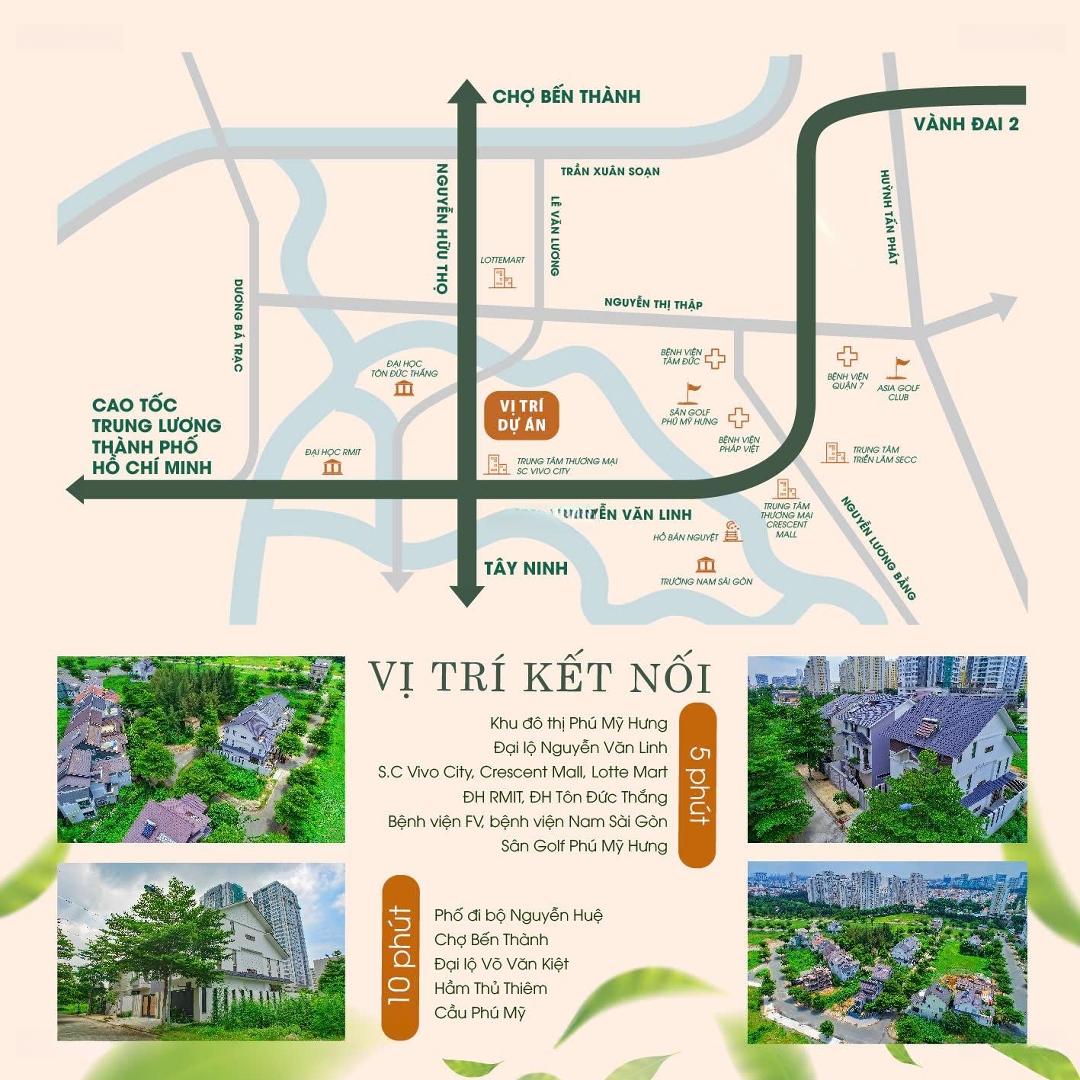 Vị trí đắc địa Liền kề Phú Mỹ Hưng, trung tâm Nam Sài Gòn Dự án Khu nhà ở và Nghỉ ngơi giải trí Tân Phong do Công ty CP Phát triển Nam Sài Gòn (SADECO) làm chủ đầu tư, tọa lạc tại phường Tân Hưng, Quận 7. Vị trí ngay sau lưng SC VivoCity, chỉ 5 phút đến Phú Mỹ Hưng Nguyễn Văn Linh, 10 phút đến trung tâm Quận 1, kết nối nhanh qua cầu Phú Mỹ, hầm Thủ Thiêm, Đại lộ Võ Văn Kiệt. 4 lý do chọn Tân Phong: Đòn bẩy tài chính: Tối ưu lợi nhuận, thanh khoản cao, dễ khai thác cho thuê. Nền tảng vững chắc: Vị trí chiến lược gần SECC, cộng đồng doanh nhân trí thức. Tâm điểm kết nối: Hạ tầng hoàn thiện, logistic thuận lợi, di chuyển toàn khu vực Nam Sài Gòn. Kiến tạo tương lai: Sản phẩm giới hạn, quy hoạch chuẩn, giá trị gia tăng bền vững. Giỏ hàng mở bán (năm 2025) chỉ áp dụng cho khách hàng là Tổ chức: Nhà phố: Diện tích 100 - 214.3m², lộ giới 12 16m, đơn giá dự kiến 130 triệu/m². Biệt thự: Diện tích 250m², lộ giới 12m, đơn giá dự kiến 115 triệu/m². Pháp lý: Sổ hồng riêng từng nền, sở hữu lâu dài. Thời gian giữ chỗ: Từ ngày 25/09/2025. Thời gian mở bán dự kiến: Ngày 20/10/2025. Chính sách tài chính linh hoạt: Cơ hội khan hiếm chỉ 23 sản phẩm được mở bán đợt này! Tân Phong được định vị là tọa độ đầu tư vươn tầm doanh nghiệp, nơi tập trung cộng đồng tinh hoa, phù hợp cả để ở và khai thác kinh doanh. Liên hệ ngay Phòng Kinh doanh Tiếp thị SADECO để nhận bảng giá & tham quan thực tế dự án: Hotline: | Website: www.nngttanphong.com.vn Khu nhà ở & NNGT Tân Phong Tọa độ đầu tư, Vườn tầm doanh nghiệp.Đặc điểm nổi bậtDiện tích :100m2Mặt tiền :16mGiá :13 tỷĐường vào :16m