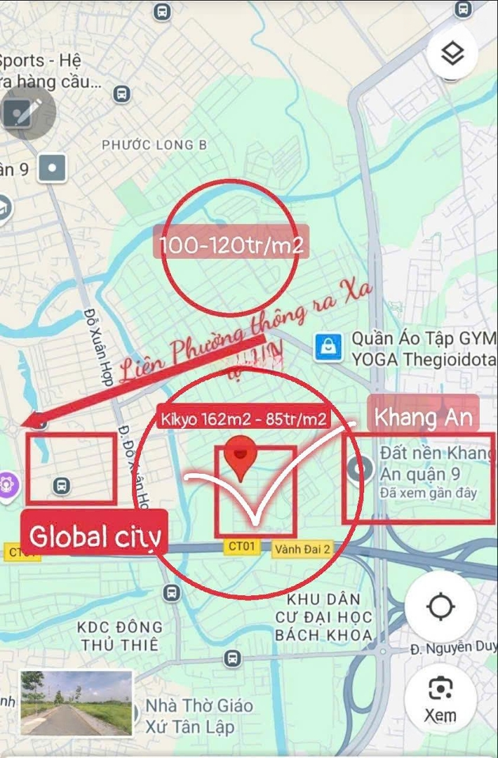 Bán đất nền nhà phố KDC Nam Phan - liền kề Valora Kikyo Đỗ Xuân Hợp. Đường Liên Phường dự kiến thông xe giữa tháng 10/2025. Cập nhật giá mới nhất khu vực: Khu Nam Phan Compound khu compound an ninh, thế đất cao, hạ tầng hoàn chỉnh, cách Global chỉ 500m. Giá bán: 85 - 95 triệu/m² đất. Diện tích đa dạng: 9 x 18m. 11 x 18m. 13 x 18m. Khu vực tiềm năng, pháp lý chuẩn, đầu tư sinh lời hoặc an cư đều an toàn. Liên hệ: Mr Linh để nhận bảng giá chi tiết và xem thực tế.Đặc điểm nổi bậtDiện tích :162m2Giá :13,77 tỷ