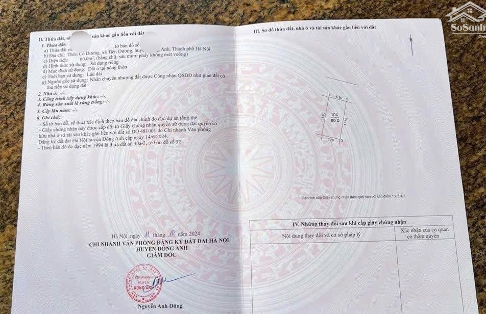 Đất nền siêu đẹp ở Đường Cổ Dương, Tiên Dương, Đông Anh, Hà Nội đang chờ đợi chủ mới. Diện tích 60m2, giá 4,9 tỷ VND, pháp lý đầy đủ, thoải mái xây dựng theo ý thích. + Mặt tiền rộng 5.2m, ngõ trước 7m, dễ dàng cho xe ô tô vào tận nơi. + Cuộc sống tiện nghi, gần gũi với thiên nhiên, phù hợp cho việc kinh doanh hoặc xây dựng nhà ở. Cách trường học, chợ, siêu thị lớn khoảng 200m thuận tiện cho việc học tập và mua sắm. Sát trường quôc tế Archimedess, mầm non timeway Đừng bỏ lỡ cơ hội này, liên hệ ngay TRẦN VĂN HUYNH qua số để biết thêm chi tiết!Đặc điểm nổi bậtDiện tích :60m2Mặt tiền :5.2mGiá :4,9 tỷĐường vào :7m