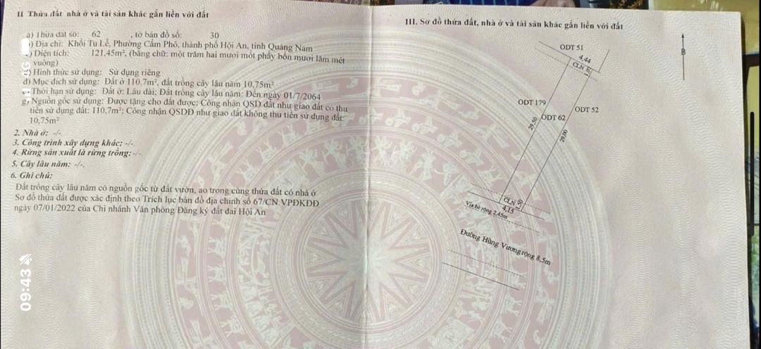 Bán đất Tại Hùng Vương, 12 Tỷ, 121,45 M2 ở Hội An, Quảng Nam