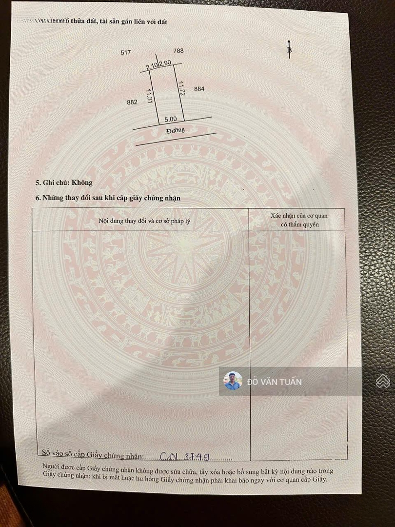 Nhanh tay sở hữu lô đất lý tưởng tại Mễ Sở, Văn Giang, Hưng Yên. + Diện tích 55m2, giá thỏa thuận. + Mặt tiền rộng 5m, thuận lợi cho kinh doanh. + Ngõ vào rộng 3.2m, dễ dàng tiếp cận. + Pháp lý đầy đủ, sổ đỏ. Liên hệ ngay để được tư vấn miễn phí: - ĐỖ VĂN TUẤN.Đặc điểm nổi bậtDiện tích :55m2Mặt tiền :5mGiá :Giá thỏa thuậnĐường vào :3.2m