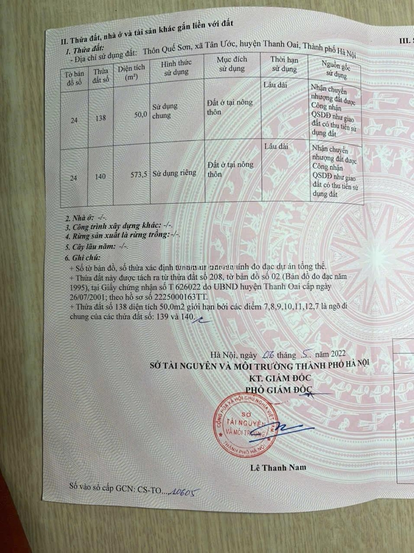 Bán đất Tại Xã Tân ước, Thanh Oai, Hà Nội, 39 Triệu / M2, 573.5 M2, Giá Siêu Hời