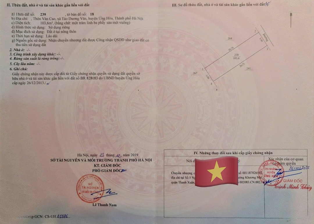 Bán đất Tại Xã Tảo Dương Văn, 3,8 Tỷ, 103,6 M2, Mặt Tiền 5m