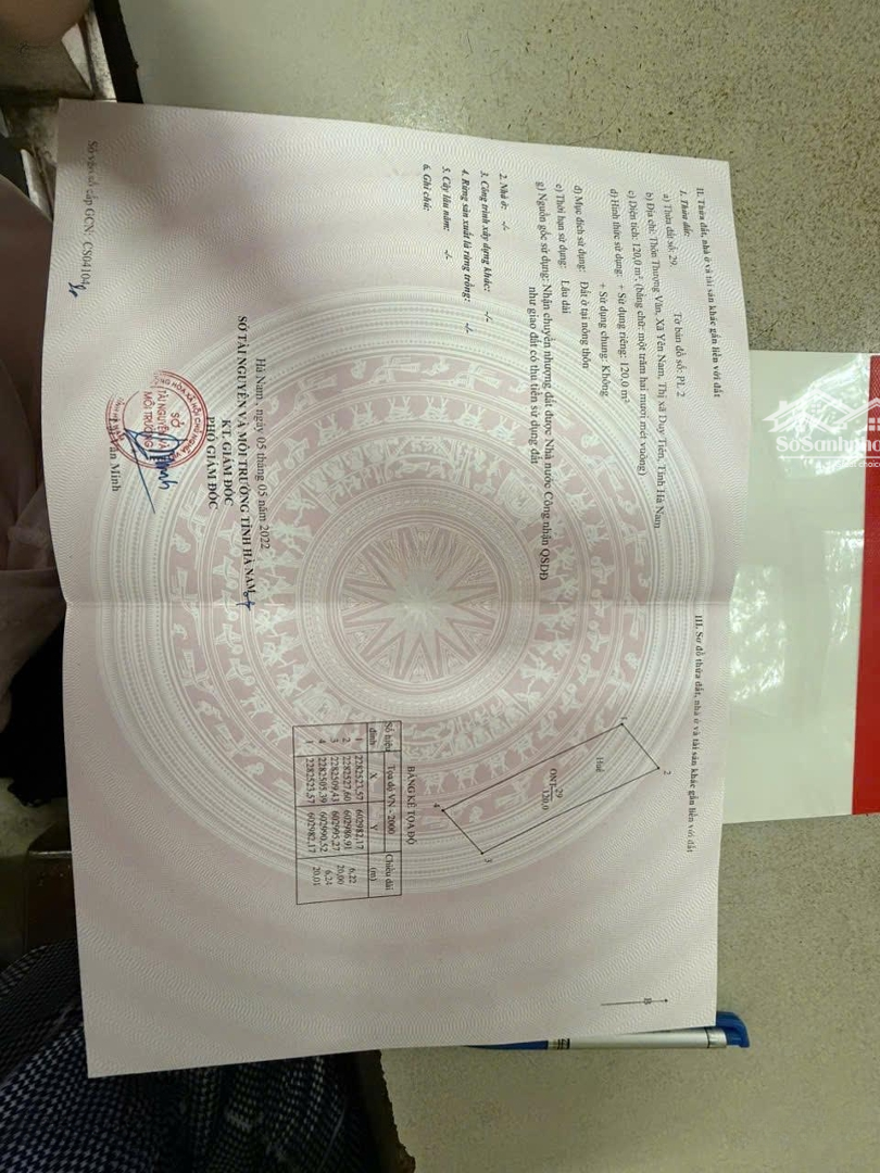 Nhanh tay sở hữu lô đất đẹp tại Yên Nam, Duy Tiên, Hà Nam với các điểm nổi bật sau: + Diện tích 120m2, phù hợp cho nhiều mục đích sử dụng. + Giá chỉ 3,65 tỷ VND, một cơ hội đầu tư hấp dẫn. + Pháp lý đầy đủ, đảm bảo quyền lợi cho người mua. + Mặt tiền rộng 6,22m, thuận lợi cho việc kinh doanh. + Ngõ vào rộng 32m, dễ dàng di chuyển, phù hợp cho xe ô tô. Lô đất này không chỉ mang lại không gian sống lý tưởng mà còn là cơ hội đầu tư sinh lời trong tương lai. Đừng bỏ lỡ cơ hội này, hãy liên hệ ngay để được tư vấn miễn phí qua số điện thoại và gặp Phạm Bá Quyết.Đặc điểm nổi bậtDiện tích :120m2Mặt tiền :6.22mGiá :3,65 tỷĐường vào :32m