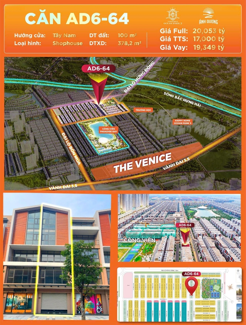 BT tại Vinhomes Ocean Park 3, Nghĩa Trụ, Văn Giang, Hưng Yên, cực chất với diện tích 100m2. Nơi này có cuộc sống đầy đủ tiện nghi và hiện đại. Phong thủy tốt, không gian sống thoáng đãng đem đến cảm giác thoải mái. Giá chỉ 16,75 tỷ VND, một món hời cho căn biệt thự đẳng cấp như thế này. Được bao quanh bởi những công viên xanh mát như công viên vịnh bốn mùa và công viên tạo sóng. Khu vực xung quanh Khu vực có nhiều tiện ích như công viên ocean park 2, gần các khu vui chơi giải trí và dịch vụ. Kết nối giao thông thuận lợi với các khu vực lân cận. Liên hệ ngay Tiến Phạm qua số để được tư vấn miễn phí.Đặc điểm nổi bậtDiện tích :100m2Giá :16,75 tỷ