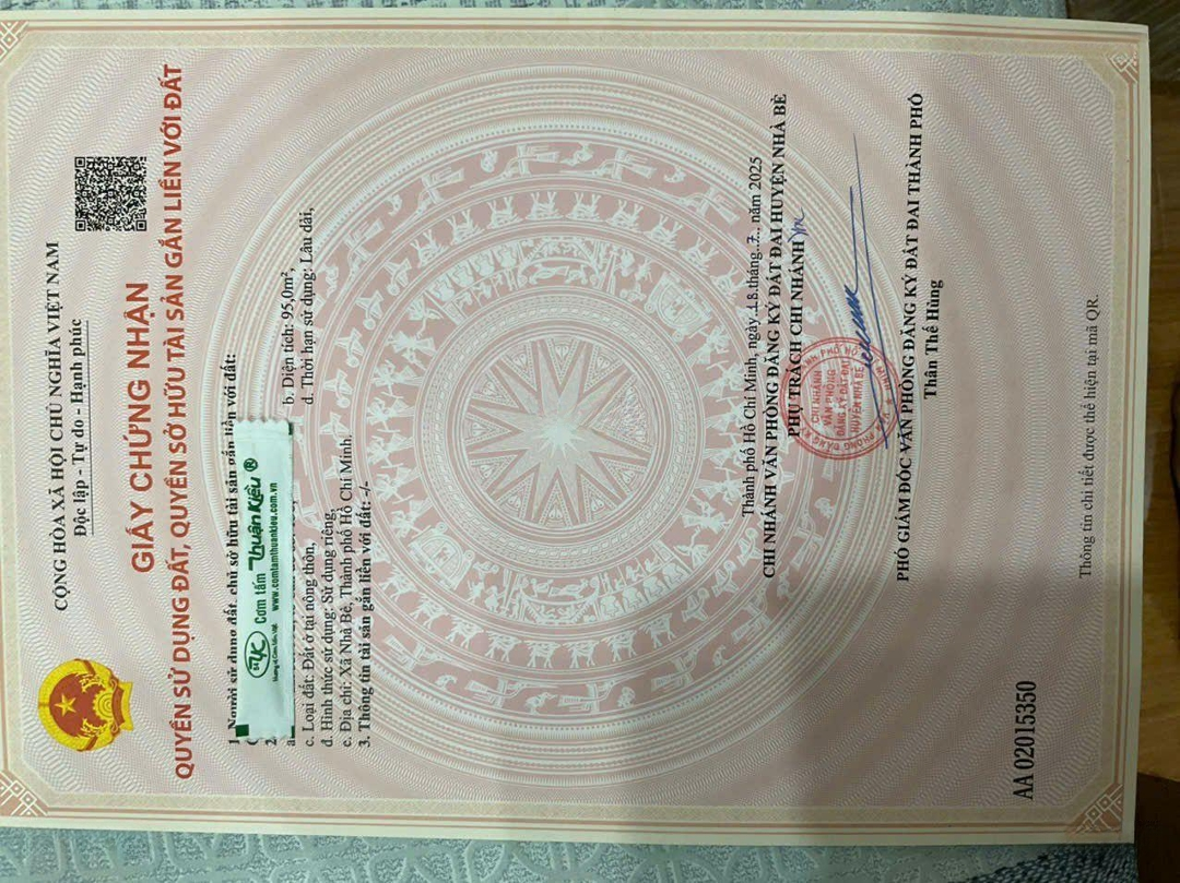 Đất ở dt 95m2, thuộc dự án ĐST ( đường Đào sư Tích) xã Phước kiểng huyện Nhà bè, đường vào 13m, hạ tầng đồng bộ điện nước âm, qh đối diện chung cư. Kv an ninh 24/24. Sổ hồng mới do UB xã Nhà bè cấp. Gần các tiện ích như Vivo City, Lotter Q7, ĐH Remit, ĐH Tôn đức Thắng, bv F-V, Tim Tâm Đức... cách Phú Mỹ Hưng 1,5km, cách Q4. Q1 tầm 3-4km. Trục đường chính ra Nguyễn Hữu Thọ, Nguyễn Văn Linh ( qua cầu Rạch đĩa mới thuộc đường Lê Văn lương) chỉ vài trăm m...Phù hợp xây nhà để ở định cư lâu dài, hoặc cho thuê, làm vp cty, đầu tư kd vì tiềm năng tăng giá là khá tốt . Dự án được qh xây dựng tự do ( 1 trệt, lững, 2 lầu), khu vực gần sông nước nên khí hậu khả mát mẻĐặc điểm nổi bậtDiện tích :95m2Mặt tiền :5mGiá :6,8 tỷĐường vào :13m