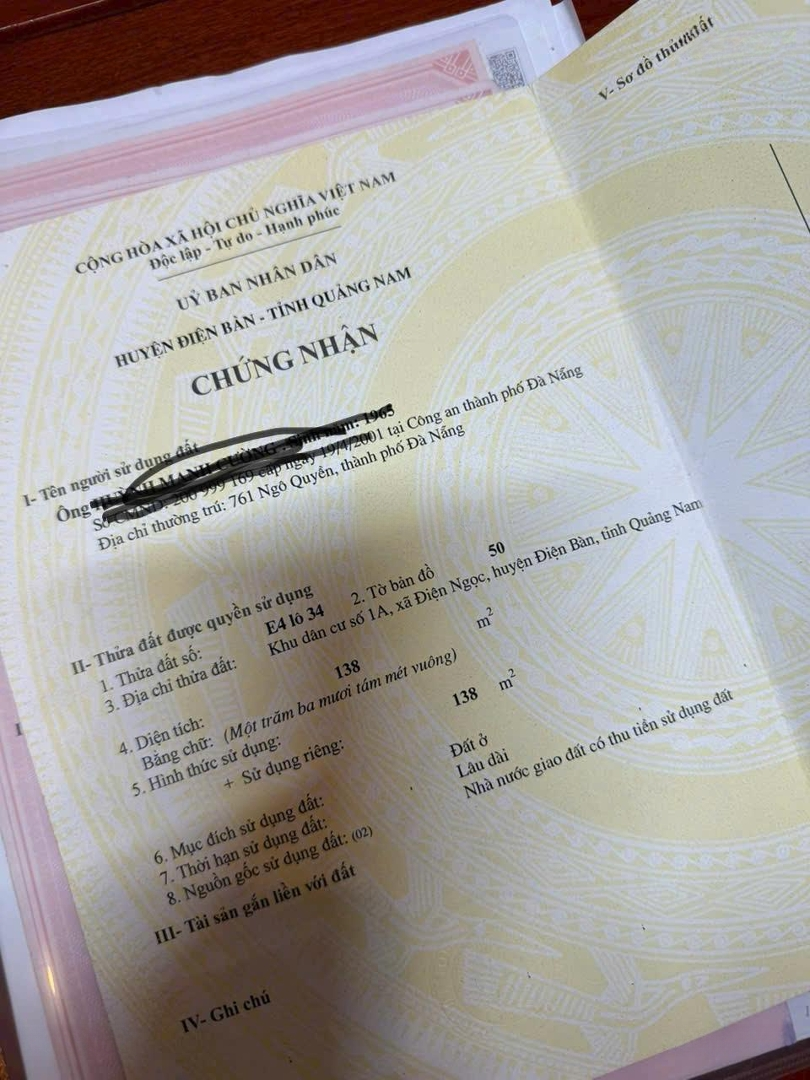 Bán lô đất thuộc làng đại học Tp Đà Nẵng. Khu đô thị 1A. Điện Ngọc. Diện tích: 6*23m. Sát trường Đại học Phan Châu Trinh và FPT. Cách đường lớn 607 (Đà Nẵng - Hội An) 100m. Cách chợ đầu mối 200m. Mặt tiền đường 7.5m lề mỗi bên 5m. Giá: 3.6 tỷ tl. LH Đặc điểm nổi bậtDiện tích :138m2Giá :3,6 tỷĐường vào :7.5m
