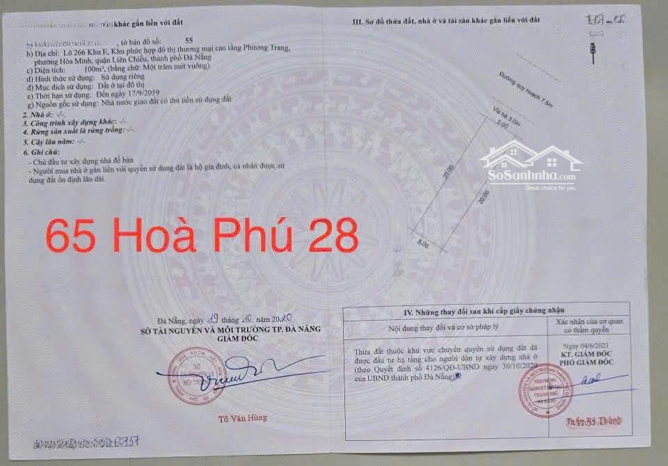 " BÊN ĐĂNG TIN KHÔNG LIÊN LẠC NHÉ- CẢM ƠN " Đất đường hoà phú 28. Khu E kim long Đường 7,5m lề 3. Khu điện âm. DT 100m (5x20). Hướng đông bắc Vị trí: đối diện trung tâm hành chính liên chiểu, gần siêu thị mega. Ra biển chỉ 2 phút. Ms7152 Giá : 6ty250 có TLĐặc điểm nổi bậtDiện tích :100m2Giá :6,25 tỷ