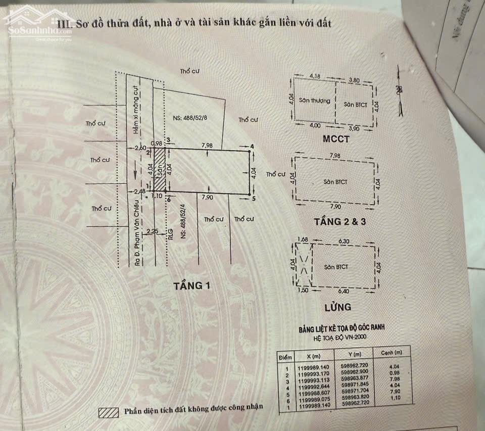 Vị trí: Hẻm ba gác tới tận nhà, chỉ 20m ra hẻm xe hơi, gần ngay nút giao Phạm Văn Chiêu – Lê Văn Thọ, phường 14, Gò Vấp. Khu dân cư hiện hữu, an ninh, tiện ích xung quanh đầy đủ: chợ, siêu thị, trường học, ngân hàng… ️ Kết cấu: Nhà xây kiên cố 5 tầng: Trệt + Lửng + 3 lầu + sân thượng Thiết kế thông minh: mỗi tầng 1 phòng ngủ, 1 WC riêng, tổng 3PN, 5WC Có thể cải tạo thêm phòng ngủ ở tầng trên cùng Sân thượng rộng rãi, thích hợp trồng cây, thư giãn hoặc phơi đồ Diện tích sổ: Vuông vức, phong thủy đẹp Pháp lý: Sổ hồng riêng, hoàn công đầy đủ, sổ cất nhà Hỗ trợ vay ngân hàng, hồ sơ pháp lý rõ ràng Phù hợp: Mua để ở, làm căn hộ dịch vụ (CHDV), văn phòng, cho thuê... Giá bán: 5,35 tỷ thương lượng chính chủ – cam kết rẻ nhất khu vực Liên hệ xem nhà: 0906.730.350 (Trung Nhà Phố)