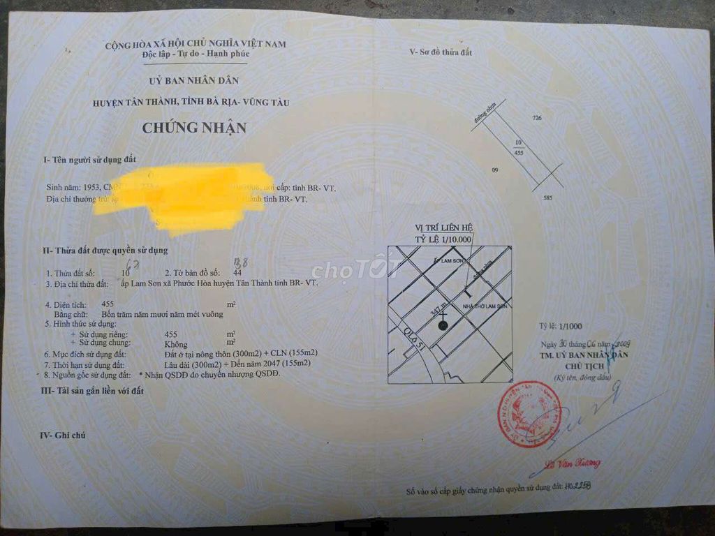 Bán nhà cấp 4 Vị trí: •Nằm tại Lam Sơn, Phường Tân Phước, TP.HCM.(bà rịa vũng tàu cũ) •Cách quốc lộ 51 300m,cách đường S 100m. Gần chợ, trường học,nhà thờ... •Tuyến giáp con đường giao thông cao tốc kết nối đi sân bay long thành. Thuận tiện di chuyển đến các khu vực lân cận. •Diện tích: 8X49m 300m thổ cư,mặt tiền đường nhựa 6m. •Tiện ích xung quanh: Gần chợ Lam Sơn, trường TH NTMK, Nhà Thờ Lam Sơn... •Gần các khu công nghiệp lớn như KCN Phú Mỹ 3, KCN Phú Mỹ 2, Cảng biển Quốc Tế Cái Mép,Cảng Nhà Máy Lọc Dầu Long Sơn... •Thích hợp để: Xây nhà nghỉ dưỡng, nhà vườn. rồng trọt, chăn nuôi.hay xây phòng trọ....vv • Đầu tư sinh lời. •Giấy tờ hợp lệ mua sang tên công chứng liền tay. Giá:4tỉ