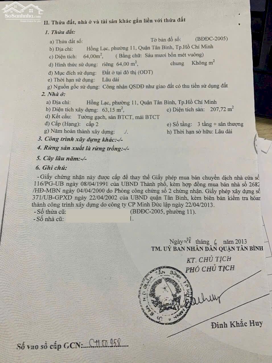 BÁN NHÀ MẶT TIỀN HỒNG LẠC 4,4X20 NGAY LẠC LONG QUÂN SÁT CHỢ TÂN BÌNH CHỈ 13,9 TỶ BÁN NHÀ Mặt Tiền Hồng Lạc 4,420 Ngay Lạc Long Quân-Sát Chợ Tân Bình chỉ 13,9 tỷ - DT: 4,4x20 thực tế 85m2, công nhận 64m2, đường nhựa 16m, cách vài căn ra mặt tiền Lạc Long Quân - Kết cấu: trệt 2 lầu sân thượng đúc kiên cố - Vị trí khá đẹp mặt tiền đường ngay Lạc Long Quân ngay chợ Tân Bình-Sát Lý Thường Kiệt-ĐH Bách Khoa - Thích hợp để ở và kinh doanh các ngành nghề liên quan đến vải phụ liệu may mặc - Giá bán chỉ 13,9 tỷ đã giảm sâu 2 tỷ để bán nhanh- giá trị khai thác cho thuê khá cao, bank hỗ trợ vay 70- 80% - Liên hệ trực tiếp gặp MS QUỲNH để xem nhà và thương lượng giá cả trực tiếp chủ nhà - Có Hoa hồng 0,5 cho Ace môi giới có khách hàng giao dịch thành công Xem hình ảnh thực tế bên dưới, thanks đã xem tin
