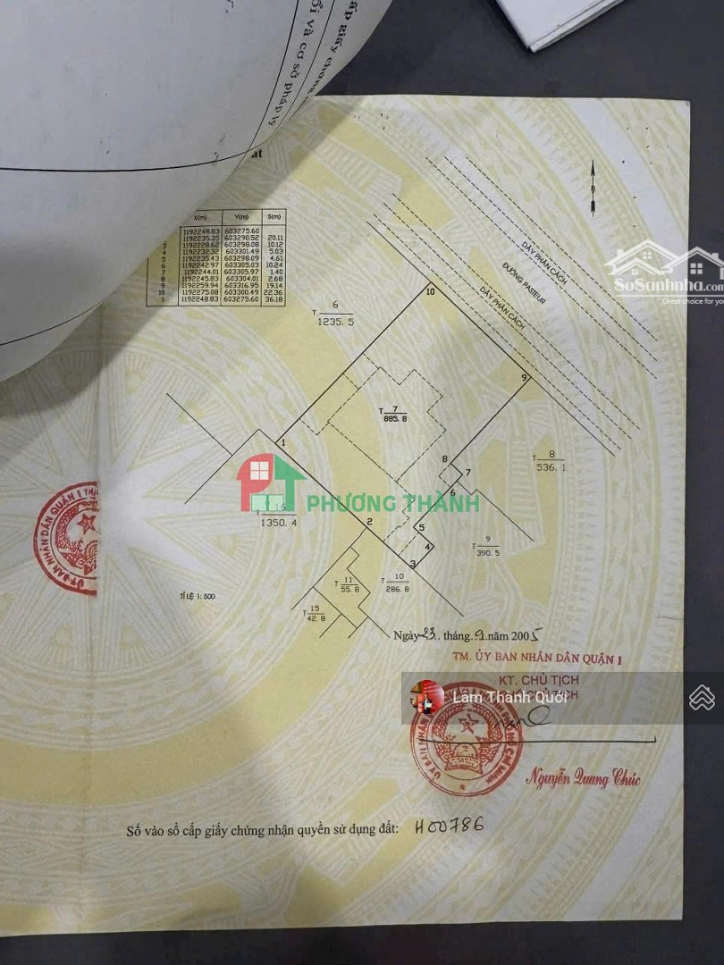 - Bán nhà MT Đường Pasteur,Quận 1 - Địa Chỉ: 107 Pasteur, P. Bến Nghé, Quận 1, địa chỉ mới: Phường Sài Gòn, Tp HCM - Diện tích đất: 816m² (22,36m x 36,18m) , - Kết cấu: 1 hầm, 4 lầu, diện tích sàn: 3120m2 - Vị trí: Mặt Tiền rất đẹp, gần Lê Duẫn, Nguyễn Thị Minh Khai, vị trí vô cùng đắc địa - Hướng: đông bắc - Giá bán: 1.200 Tỷ thương lượng ------------------------- LH: Mr Thành Phương Thành Real Trụ sở: 356 Tân Sơn Nhì, Phường Tân Sơn Nhì, Tp HCM CN: 204A Nguyễn Văn Hưởng, Phường An Khánh, Tp HCM *Nhận ký gửi mua bán, cho thuê nhà phố, biệt thự, villa, đất nền, tìm nhà theo yêu cầu. *Hỗ trợ miễn phí sang tên đăng bộ tất cả các quận huyện.Đặc điểm nổi bậtDiện tích :816m2Mặt tiền :22mGiá :1200 tỷSố tầng :4 tầngPhòng ngủ :8 phòngPhòng tắm :6 phòngĐường vào :20m