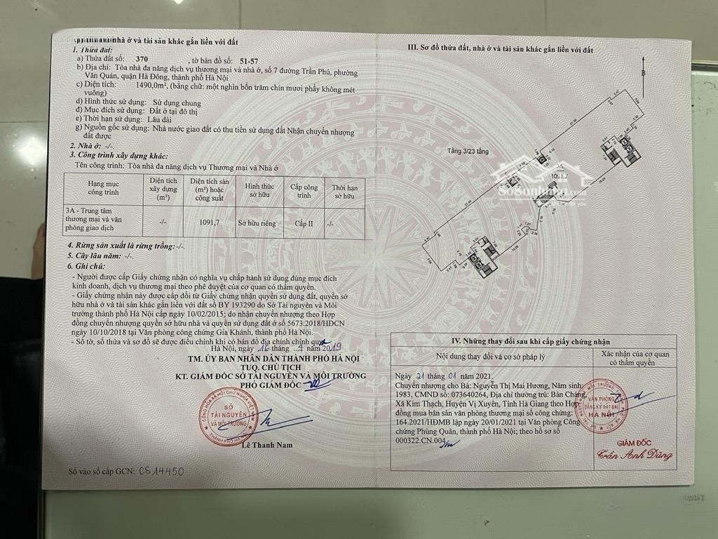 Sàn văn phòng tầng 2 tòa HHT 197 Trần Phú. - Chủ đang cho nhiều bên thuê doanh thu 300 tr/ th kín phòng. - Sổ đỏ vĩnh viễn - Chủ thiện chí bán. - Tòa nhà HHT có địa chỉ tại số 197 Trần Phú, phường Văn Quán, quận Hà Đông, TP. Hà Nội. Cách 100m đến nút giao Trần Phú Phùng Hưng Thanh Bình Trong bán kính 500m là các ngân hàng lớn: NCB Bank, TP bank Thành Đô, An Bình bank, Techcombank và ACB Văn Quán, SHB và SeA bank Hà Đông. Ngay trung tâm hành chính của Hà Nội: Sở giao thông vận tải HN, Sở tư pháp HN, Thành Ủy Hà Nội, Phòng quản lý Xuất nhập cảnh Công an HN, Văn phòng công chứng Nguyễn Thương. Cách đường sắt trên cao Cát Linh Hà Đông 100m, thuận tiện di chuyển và nâng cao lượng khách hàng đến giao dịch/ Xung quanh là các tòa nhà văn phòng sầm uất Hạ tầng. - Tiện ích: Tòa nhà 197 Trần Phú Hà Đông được đầu tư những tiện ích và dịch vụ tiêu chuẩn để phục vụ cư dân và khách thuê văn phòng như: Hệ thống sân vườn, khuôn viên cây xanh ở khu vực chung. Hệ thống thang máy tiêu chuẩn. Đội ngũ quản lý tòa nhà chuyên nghiệp, hệ thống an ninh 24/7. Hệ thống điều hòa, thông gió hiện đại. Hệ thống máy phát điện dự phòng đảm bảo có điện 24/24 cho tòa nhà. - Thiết kế: Tòa nhà 197 Trần Phú là một tổ hợp công trình gồm 2 khối nhà cao 22 tầng, đặt trên khối đế 5 tầng. Bao gồm: 2 tầng hầm rộng 1088m2 dùng để xe ô tô, xe máy và các đường ống kỹ thuật 5 tầng khối đế diện tích 6618m2 làm dịch vụ, thương mại, văn phòng cho thuê 14 tầng căn hộ ở, khu thể thao và vui chơi giải trí. Cảm ơn anh chị đã quan tâm tới sản phẩm của em. Tú ạ! Liên hệ ngay: Mr. Tú call/zalo) để xem nhà trực tiếp.Đặc điểm nổi bậtDiện tích :1490m2Mặt tiền :20mGiá :55 tỷĐường vào :48m