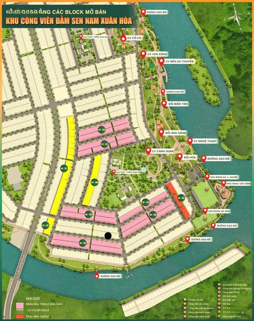 BÁN ĐẤT KHU ĐẦM SEN NAM HÒA XUÂN, ĐÀ NẴNG Vị trí đắc địa: Các block của Sungroup đang mở bán, nằm trên trục đường chính 7m5 và 10m5. Gần công viên cây xanh, khu thể dục thể thao, gần sông thoáng mát. Tiện ích xung quanh đầy đủ, hạ tầng hoàn thiện. Pháp lý: Hàng CDT thì sẽ có HDCN và Sổ Hồng . Đất người dân bán lại thì Đất đã có sổ Hồng rõ ràng. Ngoài ra có nhiều lô dân bán lại tại các tuyến: Đặng Hồi Xuân, khu Bờ Quan, khu Điện Âm, khu Hói Kiểng. Quanh khu Minh Mạng Giá bán: Từ 4,5 tỷ 5,5 tỷ/lô Nhiều sự lựa chọn phù hợp cho khách hàng an cư hoặc đầu tư.Đặc điểm nổi bậtDiện tích :125m2Mặt tiền :5mGiá :5 tỷĐường vào :7.5m