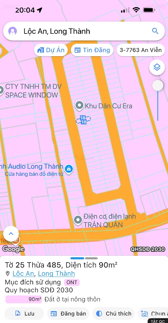Bán đất khu dân cư Era Lộc An, Long Thành Diện tích: 90m (thổ cư ONT). Vị trí vàng: cách chợ mới Long Thành chỉ vài phút, gần sân bay quốc tế Long Thành, liền kề các KCN lớn. Hạ tầng hoàn chỉnh, dân cư đông đúc, thích hợp ở, hoặc đầu tư sinh lời. Giá bán đầu tư cam kết sinh lời. Liên hệ ngay : để xem đất thực tế và chốt nhanh!Đặc điểm nổi bậtDiện tích :90m2Mặt tiền :5mGiá :1,89 tỷĐường vào :8m
