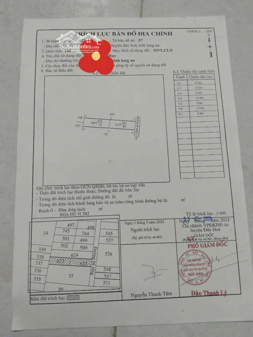 Chính Chủ Bán Lô đất (khu Cầu Lớn) đường Gò Hưu Mỹ Hạnh Nam đức Hòa Long An Dt: 5 X 33 (165m2)