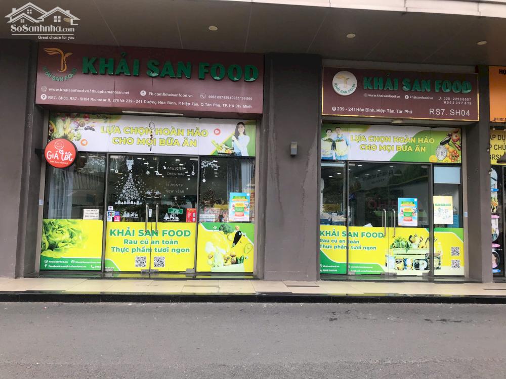 CHÍNH CHỦ CẦN BÁN CĂN SHOPHOUSE RS7- SH03 VÀ SH04 - RICHSTAR II, 239 -241 ĐƯỜNG HÒA BÌNH, HIỆP TÂN, TÂN PHÚ, TP. HỒ CHÍ MINH - Diện tích: RS7-SH03 tầng 1: 50.9 m2- tầng 2: 51.4 m2. Tổng 108.8 m2. RS7-SH04 tầng 1: 45.1 m2- tầng 2: 45.5 m2. Tổng 96.3m2 - Giá bán: 16 tỷ(có thương lượng) - Pháp lý: Sổ sách đầy đủ, công chứng liền tay - Vị trí: Richstar II, 239 – 241 Đường Hoà Bình, Phường Hiệp Tân, Quận Tân Phú, TP. Hồ Chí Minh Vị trí đẹp - thuận tiện, Căn Shophouse RS7-SH03&04 đã làm thông nhau.Nên tiềm năng khai thác kinh doanh cực lớn... - Hiện căn shophouse đang cho thuê làm siêu thị mini Liên hệ: Chị Ngân 0982663916 để được chốt giá cụ thể và dẫn đi xem căn hộ