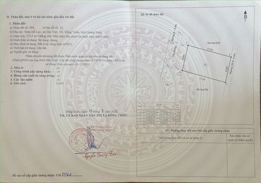 đất sổ đỏ 173,5m2 vuông vắn