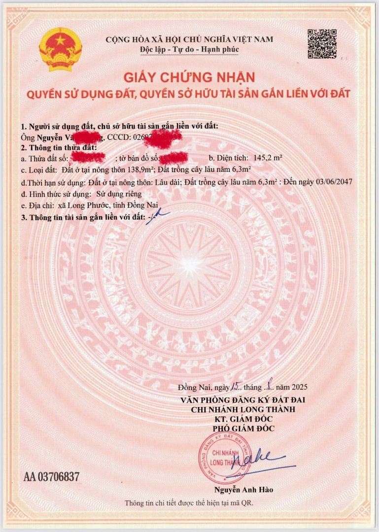 Chính Chủ Cần Bán Lô đất 5x29 145m2 Full Thổ Cư - Gần Sân Bay Long Thành