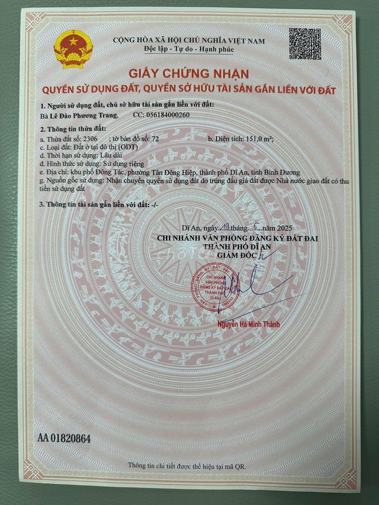 Đất 2 MT 151m2 Khu TĐC Dapark, KP Đông Tác, Tân Đông Hiệp, Dĩ An, BD