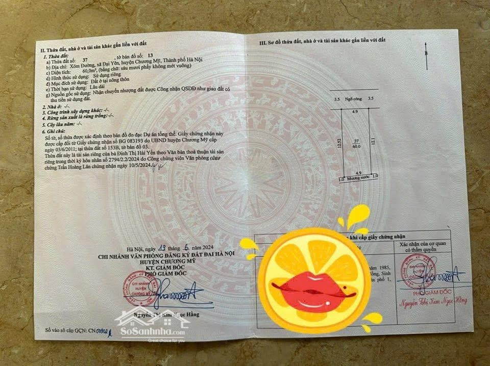 Đất nền tại Đại Yên, Chương Mỹ, Hà Nội đang chờ đón chủ mới với diện tích 60m2. Mặt tiền rộng 4.9m, ngõ rộng 3.5m, cực kỳ thuận tiện cho việc đi lại. Pháp lý đầy đủ giúp an tâm khi giao dịch. Địa điểm lý tưởng để xây dựng nhà ở hoặc đầu tư. Phong thủy tốt với hướng Đông Bắc, thích hợp cho gia chủ. Giá 3.6 tỷ có thỏa thuận, liên hệ ngay để biết thêm chi tiết. Liên hệ Ngọc Thuý qua số để được tư vấn và hỗ trợ.Đặc điểm nổi bậtDiện tích :60m2Mặt tiền :4.9mGiá :3,6 tỷĐường vào :3.5m