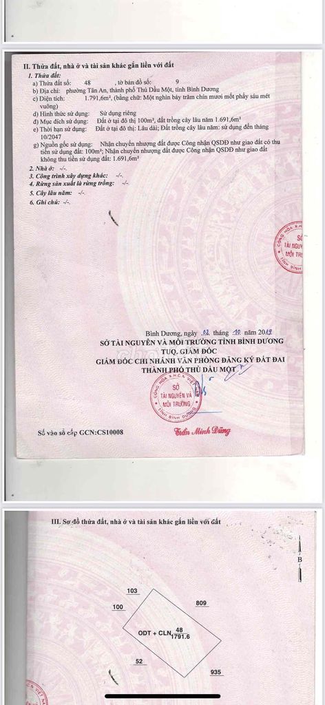 Tôi có 6 lô đất liền kề tại Tân An , Thủ dầu 1 , Bình Dương . Tổng diện tích 7.566 ( ODT : 2.600 + CLN : 4.966 ). Đất đã xây tường xung quanh và cổng rất đẹp .  Phía sau giáp sông Sài Gòn . Mặt tiền xe cont đến cửa . Nay cần vốn nên bán gấp với giá tốt 35tỷ có thương lượng . Bank định giá 60tỷ