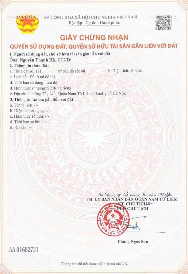 đất Nền Tây Mỗ Sổ đỏ Chính Chủ, 6,3 Tỷ, 50m2, Giá Cực Chất