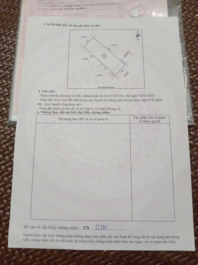 Bán đất xóm 9 Nghi Phong - Vinh Lộc mới gần trại thương binh, cách đường 72m 900m - Diện tích 108m2 ( 6 * 18 ) full đất ở. - Đường nhựa 7m thông thoáng - Hướng đông nam - Diện tích đẹp, đi lên trung tâm Vinh gần - Giá 2 tỷ 250 triệu * ANH CHỊ CÓ NHU CẦU XEM THỰC TẾ HOẶC MUA BÁN KÝ GỬI NHÀ ĐẤT GỌI EM NHÉ Ạ.Đặc điểm nổi bậtDiện tích :108m2Mặt tiền :6mGiá :2,25 tỷĐường vào :7m