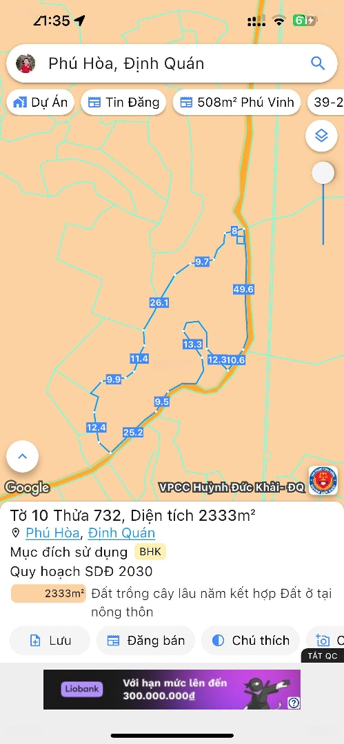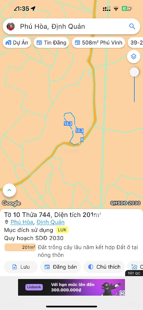 ĐẤT NGỘP NGÂN HÀNG BÁN GẤP CHỈ 1.3 TỶ Vị trí: Xã Phú Hòa, Định Quán, Đồng Nai Giá chỉ: 1.3 tỷ đồng (có thương lượng nhẹ) Diện tích: 2.543m² Đất bằng phẳng, có suối nhỏ sau đất, mặt tiền rộng Hẻm đất 3m (đã có kế hoạch lên bê tông), cách đường bê tông chỉ 180m Tiện ích xung quanh: Cách khu du lịch sinh thái Suối Mơ chỉ 5.8km UBND xã Phú Hòa: 2.5km Trường Tiểu học Nguyễn Đình Chiểu: 1.7km Chợ Phú Hòa: 2.2km Khu dân cư hiện hữu, điện nước đầy đủ Phù hợp: Làm nhà vườn nghỉ dưỡng, xây nhà ở Làm trang trại chăn nuôi, đầu tư sinh lời Diện tích lớn, phù hợp cho việc xây dựng nhà ở hoặc đầu tư sinh lời. Khu vực yên tĩnh, không khí trong lành, lý tưởng cho cuộc sống an bình. Giao thông thuận lợi, dễ dàng di chuyển đến các khu vực lân cận Đất chính chủ cần bán gấp do ngộp ngân hàng Hỗ trợ vay vốn ngân hàng Liên hệ ngay: Zalo/Call)Đặc điểm nổi bậtDiện tích :2543m2Giá :1,3 tỷ
