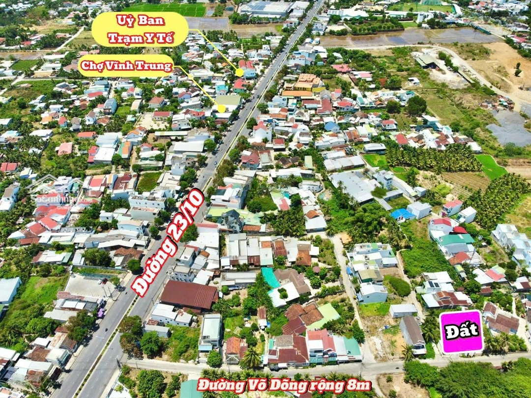 Mặt tiền đường Võ Dõng, Vĩnh Trung, Nha Trang. Khu dân cư đông kín, kinh doanh sầm uất, cách 23/10 chỉ 100m. đường thông rộng 8m. Diện tích 98m2 full thổ cư, ngang 10m, góc 2 mặt tiền, vuông vức, thuận tiện kinh doanh. Trên đất có nhà cấp 4 cũ. Giá giảm còn 2tỉ850tr, giá cũ 2tỉ930tr. LH lvccĐặc điểm nổi bậtDiện tích :98m2Mặt tiền :10mGiá :2,85 tỷĐường vào :8m