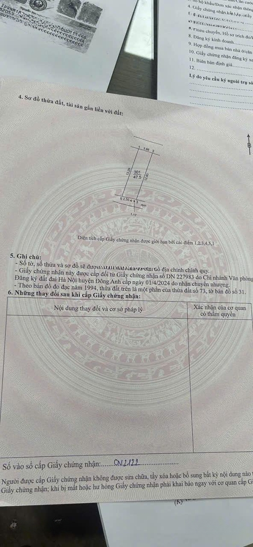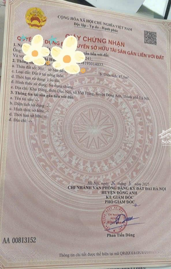 Lô đất vị trí vàng Lô 47,5 tọa lạc ở khu Đông Việt Hùng, cách đường liên huyện chỉ ~100m, cách trục chính 15m 2 ô tô tránh nhau. Giao thông & hạ tầng Đường trước đất ô tô bán tải vào thoải mái, di chuyển thuận tiện ra trục chính và khu vực lân cận. Tiện ích sẵn có Bán kính 500m có đầy đủ trường học cấp 1, 2, 3; chợ; trạm y tế; khu đấu giá; và đã có nhà cấp 4 mới xây dựng. Giá & điều kiện Giá: 3,5 tỷ, hoa hồng 1% (có thể thương lượng nhẹ) mức giá rất cạnh tranh so với các lô đất tương đương. Lý do đầu tư hấp dẫn Khu Đông Việt Hùng đang được chú trọng phát triển, dự án nhà ở xã hội, quỹ đất đấu giá Nhu cầu đất thổ cư & nhà hoàn thiện đang gia tăng mạnh trong vùng Đông Anh. Liên hệ ngay để xem đất & chốt lô đẹp: [số điện thoại / Zalo]Đặc điểm nổi bậtDiện tích :48m2Mặt tiền :4mGiá :3,5 tỷĐường vào :3m