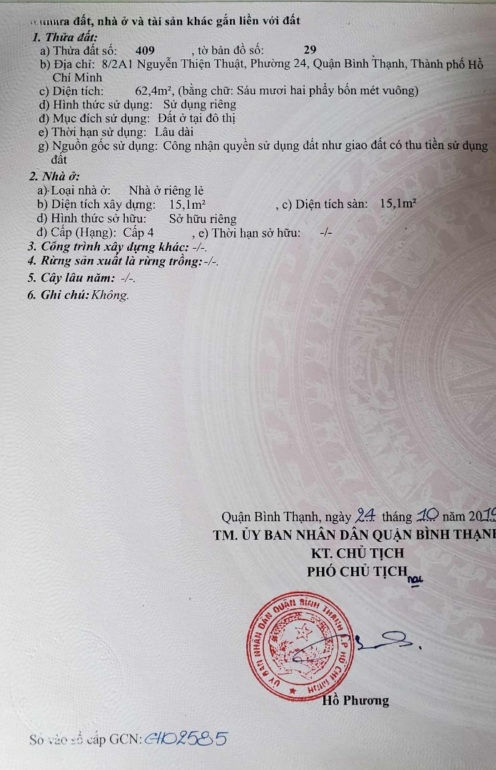 HXH vào nhà ngay chợ Bà Chiểu 63m2 (4.2 x 15.5) nhỉnh 10 tỷ Đ. Nguyễn Thiện Thuật, P. 24, Bình Thạnh hàng xóm CC Tecco Central Home. Thông tin chi tiết: Diện tích: 63m² (ngang 4.2m x dài 15.5m). Kết cấu: Trệt + lửng, 2PN (có phòng ngủ trệt), 1WC, sân trước rộng thoáng trồng cây. Pháp lý: Sổ hồng chính chủ, cất két công chứng ngay. Giá chào: Nhỉnh 10 tỷ. Ưu điểm nổi bật: Hẻm ô tô thông, xe hơi vào tận nhà. Khu VIP, an ninh, dân trí cao, ngay sát căn nhà mới xây 7 tầng. Thông số vàng 4.2 x 15.5m rất hiếm có trong phân khúc này. Chủ xác định bán đất, tặng nhà, tiện sửa chữa hoặc xây mới cao tầng theo ý muốn. Vị trí đắc địa: Trung tâm Bình Thạnh cạnh Chợ Bà Chiểu liền kề Chung cư Tecco Central Home. Địa chỉ: Nguyễn Thiện Thuật, P. 24, Bình Thạnh. Liên hệ ngay: Thống).Đặc điểm nổi bậtDiện tích :63m2Mặt tiền :4.2mGiá :10,5 tỷPhòng ngủ :2 phòngPhòng tắm :2 phòng