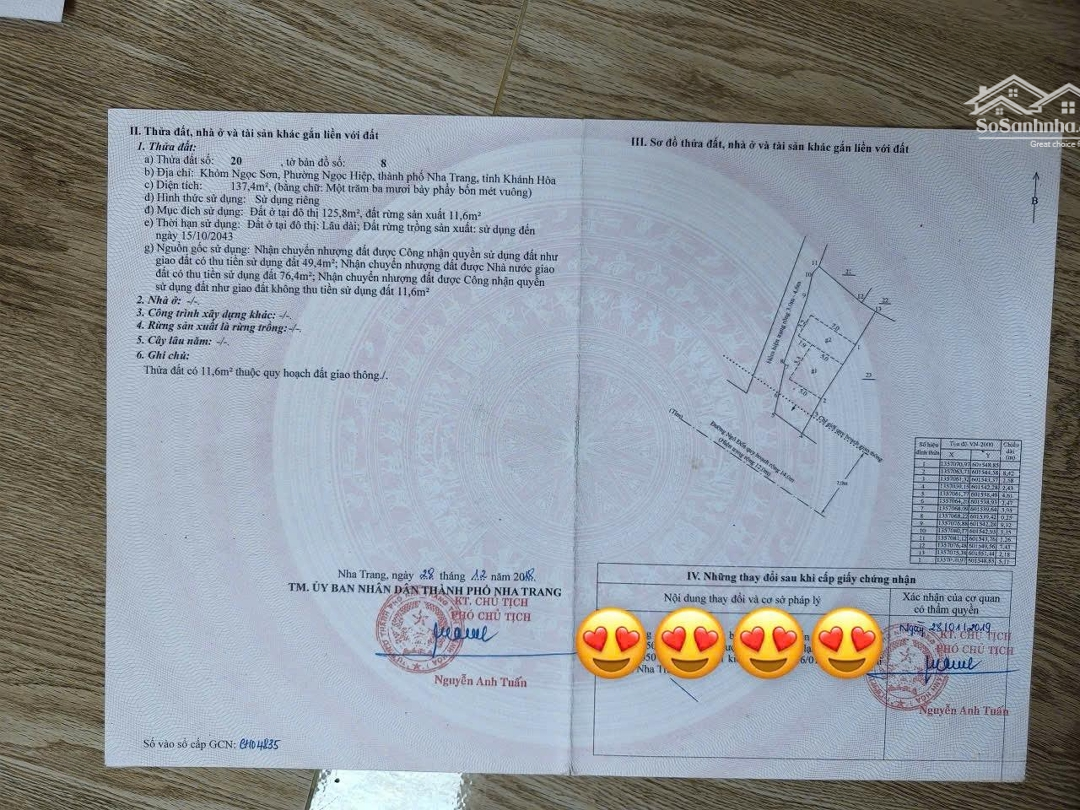 MS207. Bán nhà 2 mặt tiền Ngô Đến Nha Trang 5 tỷ 500. Diện tích: 137,4m2. Vị trí: Ngô Đến, cách bãi tắm Hòn Chồng chỉ 1,8km. Lợi thế: 2 mặt tiền, view đẹp thoáng mát. Hiện trạng: Đang cho khách Tây thuê 10 triệu/tháng. Pháp lý: Sổ hồng riêng sang tên nhanh gọn. Giá bán: 5,5 tỷ. Thuế phí: Mỗi bên 50%. Cơ hội đầu tư sinh lời ổn định hoặc an cư lâu dài tại khu vực tiềm năng du lịch!Đặc điểm nổi bậtDiện tích :137.4m2Mặt tiền :4.61mGiá :5,5 tỷĐường vào :12m