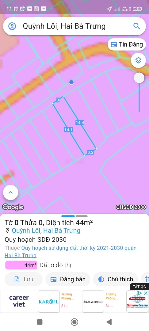 ###Trung tâm quận Hai Bà Trưng, cách 50m ra mặt Ngõ Quỳnh đường ôtô. * Ngõ thoáng, thông nhiều ngã, nhiều tiện ích. - gần bệnh viện Thanh Nhàn, quanh nhiều trường Đại Học. _ Nhà khung cột bê tông chắc chắn, giá đầu tư giữ tiền. - Sổ đỏ vuông đẹp, sẵn sàng sang tên. + LH : để đi xem nhà miễn phí.Đặc điểm nổi bậtDiện tích :44m2Mặt tiền :3mGiá :8 tỷSố tầng :3 tầngPhòng ngủ :4 phòngPhòng tắm :3 phòngĐường vào :2m