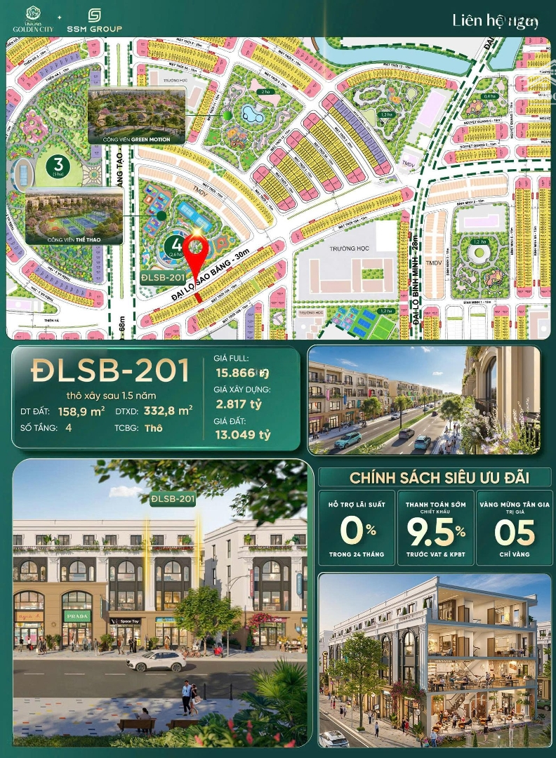 Độc quyền căn shophouse 2 mặt tiền, đối diện công viên. * Ngân hàng hỗ trợ vay 70%, miễn gốc lãi 24 tháng. Nhận nhà quý 3/2027. Các chiết khấu KH được hưởng. - Bảo lãnh ngân hàng: 1,2%. - Thanh toán sớm: 8% - 9,5%. - Thanh toán tiến độ: 4% - 4,5%. - Vay ngân hàng 70% hỗ trợ lãi suất tới 24 tháng. - Thanh toán sớm trong 15 ngày: 1% - 1,5%. Đối với mỗi phương thức thanh toán sẽ có 1 mức chiết khấu khác nhau. Giá full 15.866 tỷ - CK còn 14 tỷ. Liên hệ: Zalo/Call/Mess) em Tuấn Anh Vinhomes để được báo giá chi tiết từng dòng căn và phương thức thanh toán có chiết khấu tốt nhất. - Trục Cầu Rào 3 cao tốc vành đai, liền mạch trung tâm Hải Phòng, cảng & KCN. - Tiềm năng tăng giá vượt trội. - Chỉ 15 - 25 phút tới mọi đầu mối chiến lược của TP. Dự án được quảng bá có tỷ lệ cây xanh và mặt nước lớn (nguồn thống kê ~70% diện tích quy hoạch dành cho cây xanh, hồ nhân tạo, công viên); có công viên lớn (35 ha) nhằm tạo không gian sống sinh thái. - Khai thác cho thuê dễ lợi nhuận ổn định. Gần KCN, nhu cầu thuê chuyên gia cao, đặc biệt với villa & shophouse. - Pháp lý rõ ràng sổ đỏ sở hữu lâu dài. Yên tâm đầu tư, dễ dàng mua bán & sang nhượng sổ đỏ. - Trung tâm mới của khu Nam Hải Phòng.Đặc điểm nổi bậtDiện tích :159m2Mặt tiền :7.5mGiá :14 tỷSố tầng :4 tầng