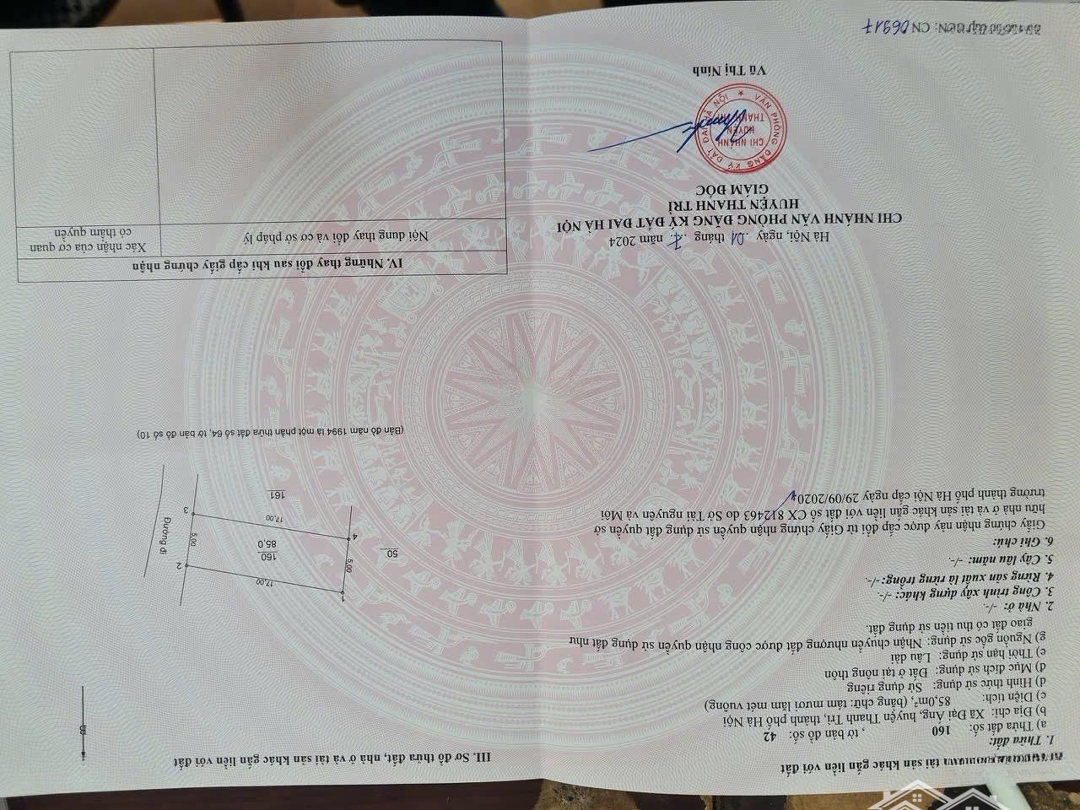 SIÊU HOT - BÁN LÔ ĐẤT ĐẸP VĨNH TRUNG - ĐẠI ÁNG Vị trí đẹp, tiềm năng sinh lời cao Diện tích: 85m Lô góc thoáng mát Giá chào: 100triệu/m (có thương lượng) Đường trước nhà 4m, ô tô ra vào thoải mái Cách 10m ra trục chính 6m Chỉ cách 100m đến Tổ hợp Ga Hà Nội mới đang chuẩn bị khởi công Pháp lý chuẩn: Sổ đỏ chính chủ, sang tên ngay Khu vực dân cư hiện hữu, giao thông thuận tiện Cơ hội đầu tư cực tốt Tăng giá mạnh khi Ga Hà Nội đi vào hoạt động Liên hệ ngay: Đặc điểm nổi bậtDiện tích :85m2Mặt tiền :5mGiá :8,5 tỷĐường vào :4m