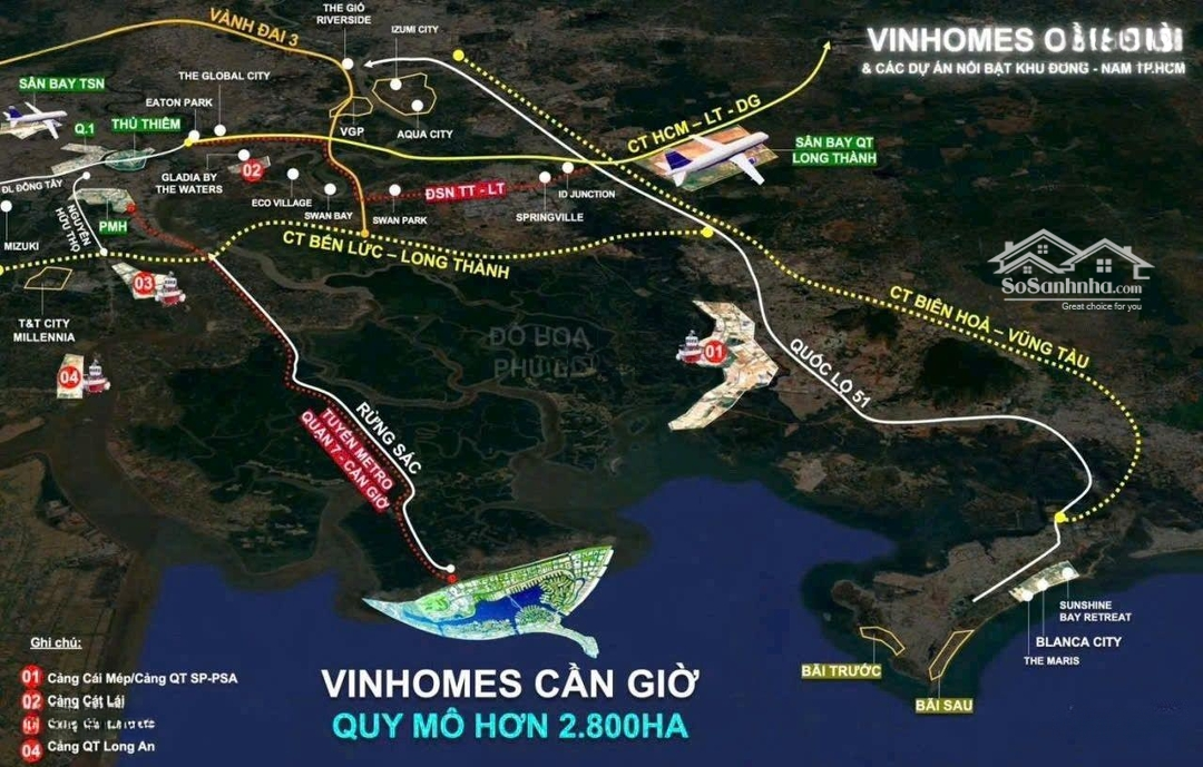 Vinhomes Cần Giờ biểu tượng đô thị biển của TP. HCM. (Còn gọi là: Vinhomes Green Paradise hoặc Vinhomes Long Beach). 1. Quy mô & vị trí. Siêu đô thị biển lấn biển với tổng quy mô ~2.870 ha. Vị trí: Xã Long Hòa Thạnh An, huyện Cần Giờ, TP. HCM. Tổng vốn đầu tư: 217.000 282.800 tỷ đồng (~910 tỷ USD). Khởi công: 19/4/2025 Dự kiến bàn giao: 20282031. 2. Kết nối hạ tầng. Cách trung tâm TP. HCM chỉ 50km, di chuyển nhanh qua: Cao tốc Bến Lức Long Thành. Cầu Cần Giờ (hoàn thành sẽ rút ngắn thời gian còn 30 phút). Quy hoạch tương lai: Tuyến Metro, Cảng du lịch đường thủy gia tăng giá trị kết nối vùng ven biển. 3. Phân khu & Loại hình sản phẩm. Gồm 45 phân khu chức năng: HeartBay. LifeBay. EcoBay. BlueBay. Sản phẩm đa dạng: Biệt thự, nhà phố, shophouse. Condotel, căn hộ, officetel. Khách sạn 5 sao. 4. Tiện ích & Trải nghiệm nghỉ dưỡng. Bến du thuyền quốc tế, Vinpearl, VinWonders. Sân golf 27 lỗ, công viên, quảng trường biển. Sky - bar, Beach Club, tổ hợp giải trí & mua sắm. Hệ sinh thái "All - in - Vin": Vincom. Vinmec. Vinschool. An ninh 24/7 PCCC chuyên nghiệp. 5. Pháp lý Sở hữu. Có quy hoạch 1/500, đã có giấy phép xây dựng cho nhiều phân khu. Cư dân Việt Nam: Sở hữu lâu dài. Người nước ngoài: Sở hữu 50 năm (theo luật định). 6. Tiềm năng đầu tư. Vị trí đắc địa tại huyện ven biển duy nhất của TP. HCM. Nằm trong khu rừng ngập mặn Cần Giờ di sản thiên nhiên được UNESCO công nhận. Là điểm kết nối Đông Nam Bộ tuyến du lịch trọng điểm quốc gia. Được xem là động lực tăng trưởng 3 năm tới của Vinhomes. Hấp dẫn nhờ hệ sinh thái nghỉ dưỡng tăng trưởng bền vững. 7. Tiến độ & Triển vọng. Đã triển khai san lấp và xây dựng từ 2025. Bàn giao từ 2028. Hướng đến trở thành đô thị biển chuẩn ESG, kết hợp nghỉ dưỡng và đô thị thông minh hàng đầu Việt Nam.Đặc điểm nổi bậtDiện tích :100m2Giá :Giá thỏa thuậnSố tầng :5 tầngPhòng ngủ :5 phòngPhòng tắm :5 phòng