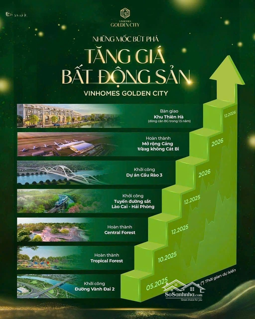 Căn Song Lập hiếm tại Vinhomes Golden City Vị trí vàng, giá trị bền vững Tổng quan dự án Vinhomes Golden City Chủ đầu tư: Vingroup Vị trí: Trung tâm thành phố, tiếp giáp các tuyến đường huyết mạch Quy mô: Khu đô thị hiện đại, đồng bộ, đầy đủ tiện ích: công viên, trường học, bệnh viện, trung tâm thương mại Vị trí căn Song Lập Ngay lõi dự án, đối diện công viên ART FOREST 5ha lá phổi xanh lớn nhất khu đô thị Tiếp giáp trục đường Sáng Tạo 68m tâm điểm giao thương và kết nối Thông tin chi tiết căn Song Lập Diện tích đất: 175,1m Diện tích xây dựng: 329,2m Hướng: Đông Nam đón nắng gió, hợp phong thủy Thiết kế hiện đại, không gian thoáng, tối ưu công năng cho gia đình hoặc khai thác đầu tư Ưu đãi bán hàng Hỗ trợ vay ngân hàng 0% lãi suất trong 24 tháng Chiết khấu tới 9,5% khi khách hàng thanh toán sớm Quà tặng giá trị và nhiều chính sách ưu đãi đặc biệt Lý do nên sở hữu Tiềm năng tăng giá cao nhờ hạ tầng & tiện ích đồng bộ Không gian sống xanh, sang trọng, an ninh tuyệt đối Thanh khoản tốt, thích hợp để an cư đầu tư cho thuê Liên hệ ngay: để được tư vấn chi tiết & tham quan thực tế!Đặc điểm nổi bậtDiện tích :175.1m2Giá :17,5 tỷSố tầng :4 tầngĐường vào :68m