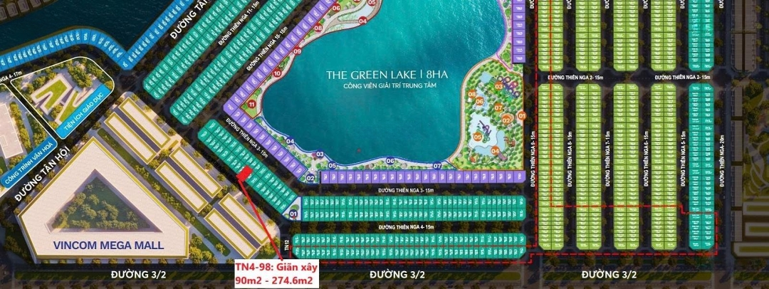 Phân khu đẹp nhất của Vinhomes Green City 97 siêu phẩm, giá tốt nhất thị trường Khách hàng xhỉ bỏ ra 15% (2.3 tỷ) sở hữu biệt thự ven hồ Tặng xe hơi VF7 Quà tặng : 300 triệu (dùng trong khám bệnh Vinmec, nghĩ dưỡng Vinpearl, vui chơi công viên nước Vinwonder) Chiếc khấu 1.3% cho khách hàng thẻ Vinclub Vị trí độc tôn, liền kề TTTM Vincom Megamall, vinschool, công viên nước Đảm bao tiềm năng vượt trội Không gin sống thật lý tưởng tận hưởng đặt quyền ven hồ Green Lake 5.2 ha, 4 công viên chủ đề Sỡ hữu ngay Vị trí vàng ngay trung tâm a vinhomes Tây Bắc của Tp. HCM Dt: 10 x15, dtsd: 262m2c sân vườn 70m, pháp lý sổ hồng Miễn phí dich vụ 2 năm Vị trí vàng Độc tôn , hiếm có View triệu đô Giá trị đầu tưĐặc điểm nổi bậtDiện tích :150m2Mặt tiền :15mGiá :17,9 tỷSố tầng :3 tầngPhòng ngủ :4 phòngPhòng tắm :4 phòng