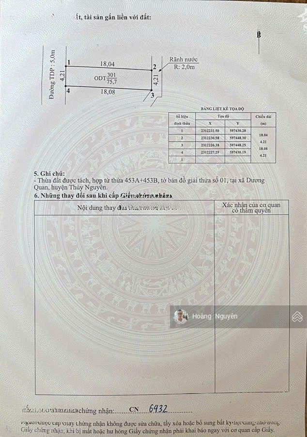 Bán 2 lô liền kề tại Dương Quan, Thủy Nguyên. Diện tích : 75m2/ lô Ngõ trước đất rộng từ 3-5m ô tô ra vào thuận tiện. Vị trí ngay gần khu chợ Dương Quan, vài bước ra đường Đỗ Mười và TTHC mới. Mọi tiện ích xung quanh đầy đủ, tiềm năng sinh lời cao Pháp lý: sổ hồng chính chủ Giá bán : 2,590 tỷ Liên hệ: ( Call, zalo)Đặc điểm nổi bậtDiện tích :75m2Mặt tiền :4.21mGiá :2,59 tỷĐường vào :5m