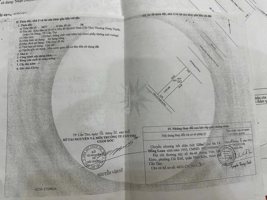 Hàng vip. Bán 3 nền liền kề đường Trần Hoàng Na khu Hồng Loan 6A đoạn chưa qua D17. - Dt 15x24 (360m2). - Hướng Đông Bắc. - Lề 10m. - Lộ 24m. - Sổ hồng. Bán 3 nền liền kề trục chính khu Hồng Loan đường Trần Hoàng Na, vừa qua cầu là tới nền sổ hồng thổ cư 100% chạy thẳng qua Nam Long 3 và Thành Đội Cần Thơ. Giá bán 27 tỷ. L/h gặp Thống xem nền.Đặc điểm nổi bậtDiện tích :360m2Giá :27 tỷĐường vào :24m