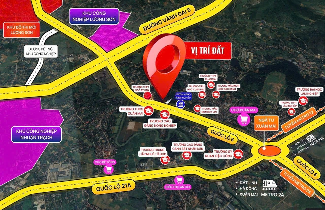 Đất nền tại Quốc lộ 21A, Thị trấn Xuân Mai, Chương Mỹ, Hà Nội với diện tích 100m2 đang chờ đón chủ nhân mới. - Điểm đặc biệt: + Giá hợp lý 27 triệu VND, phù hợp với nhu cầu đầu tư và xây dựng. + Mặt tiền rộng 5m, thuận tiện cho việc kinh doanh hoặc xây dựng nhà ở. + Ngõ vào rộng 11m, dễ dàng tiếp cận, phù hợp cho ô tô vào tận nơi. + Pháp lý đầy đủ, đảm bảo an tâm cho người mua. Khu vực này hứa hẹn sẽ mang đến một cuộc sống tiện nghi và phát triển. Đừng bỏ lỡ cơ hội sở hữu mảnh đất này. Liên hệ ngay với Đạt Nguyễn qua số điện thoại để biết thêm thông tin chi tiết.Đặc điểm nổi bậtDiện tích :100m2Mặt tiền :5mGiá :2,7 tỷĐường vào :11m