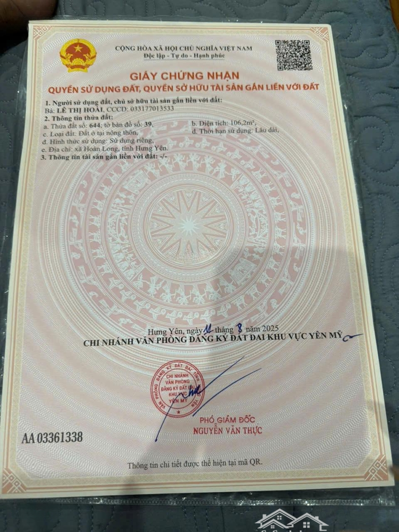 BÁN ĐẤT ĐẸP LÔ GÓC Ô TÔ 7 CHỖ VÀO TẬN NHÀ 105m2 GIÁ ĐẦU TƯ 25tr/m Vị trí: Đông Tảo, Khoái Châu Hưng Yên Diện tích: 106m² Mặt tiền: 5m nở hậu 5.2m Lô góc thoáng mát, đường rộng, xe 7 chỗ vào tận nơi Phun thổ cư, pháp lý rõ ràng, sẵn sàng giao dịch Tiện ích xung quanh: Gần trung tâm, chợ, trường học Sát Vành đai 4, di chuyển thuận tiện về Hà Nội Cách Ecopark chỉ 5km Thửa đất vuông vắn, vị trí tiềm năng, thích hợp để ở, đầu tư hay kinh doanh, tđất trực tiếp chính chủĐặc điểm nổi bậtDiện tích :106m2Giá :2,65 tỷ