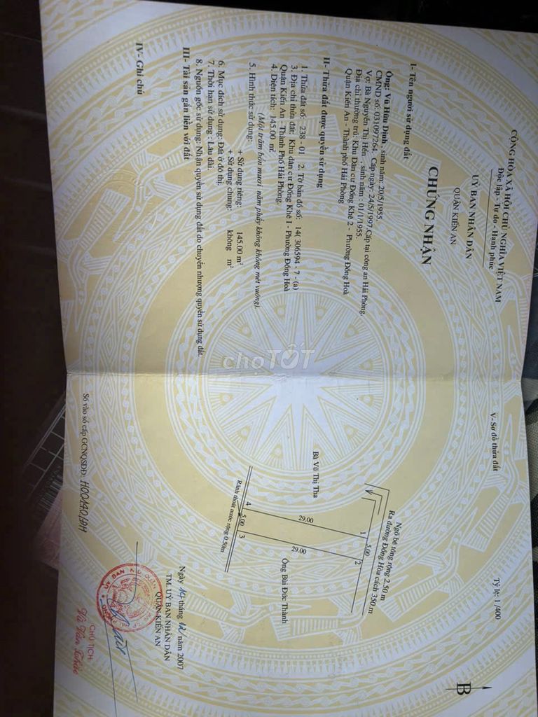 🌺🌺🌺CHÍNH CHỦ GỬI BÁN LÔ ĐẤT MẶT ĐƯỜNG ĐỐNG KHÊ ,KIẾN AN ======== Vị trí :Tổ Dân Phố Đống Khê 1, Đồng Hoà, Kiến An , Hải Phòng 🍂 𝑫𝒊𝒆̣̂𝒏 𝒕𝒊́𝒄𝒉: 145𝒎2 , Ngang 5 🌼Giá chỉ có 7,5 tỷ 🍂 Lô đất đối diện với các dự án lớn của Quận Kiến An như dự án HP Elite Central với gần 200 căn hộ ... 🍂 Đường to thông rộng tiện ích thì ko đâu bằng 💥 Xung quanh dân cư đông đúc, gần trường học, chợ, tiện ích xung quanh đầy đủ ko thiếu thứ gì. Rất thích hợp để kinh doanh ,buôn bán ... 🔔Liên Hệ số Zano Em Cảng Chuyên Nhà và Đất