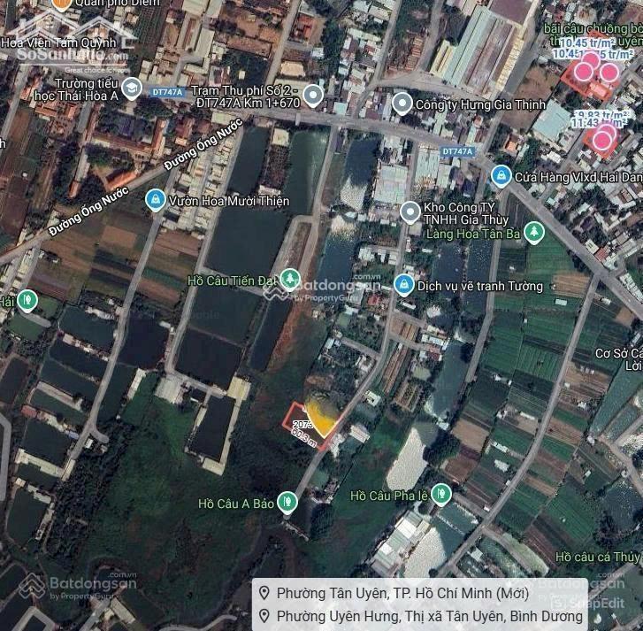 Bán đất ĐT 747A, Thái Hòa, Tân Uyên, Bình Dương, 5,5 triệu/m2, 2114m2, chính chủ hot Đang kẹt tiền để kinh doanh nên cần sang nhượng lại. Đất nền tại đường ĐT 747A, Thái Hòa, Tân Uyên, Bình Dương (nay là Phường Tân Đông Hiệp, TP. HCM). Diện tích 2.114m², giá 5,5 triệu/m², (có thương lượng). Đất đã lên thổ cư 160m², trích lục có đường mặt tiền 5m (khách thiện chí mình sẽ cho trích lục lại bản vẽ hiện trạng). + Diện tích rộng rãi, phù hợp cho nhiều mục đích sử dụng. + Mặt tiền 33,5m, thuận lợi cho việc kinh doanh hoặc xây dựng nhà ở. + Ngõ vào rộng 5m, dễ dàng cho xe ô tô ra vào. + Pháp lý đầy đủ, đảm bảo an toàn cho giao dịch. Điểm nhấn: Mặt tiền rộng, phù hợp cho việc kinh doanh hoặc đầu tư. Ngõ vào dễ dàng, thuận tiện cho việc di chuyển. Pháp lý đầy đủ, đảm bảo quyền lợi cho người mua. Khu vực xung quanh có nhiều tiện ích như bệnh viện Hoàn Mỹ Vạn Phúc 2 và các siêu thị như Siêu thị Mẹ Bầu & Em Bé Con Cưng, Bách Hóa Xanh, tạo điều kiện thuận lợi cho cuộc sống hàng ngày. Vui lòng liên hệ 0909 712 098 với Mr Quân để biết thêm thông tin chi tiết.
