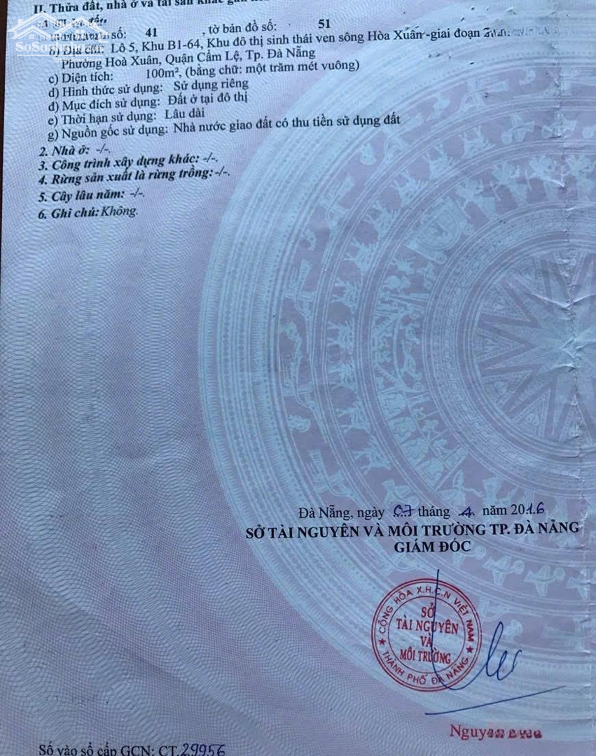 Bán đất đường Diên Hồng khu sinh thái Hòa Xuân, sát sông Cẩm Lệ. Vị trí: Lô B1.64 lô số 5, đường Diên Hồng. Đường 2 làn, có dải phân cách, lộ giới 21m, tuyến đường thông suốt toàn khu Hòa Xuân. Vị trí sát sông Cẩm Lệ, không gian thoáng mát, phong thủy đẹp. Thông tin lô đất: Diện tích: 100m² (5m x 20m). Lô đất vuông vức, nền cao, dễ xây dựng. Phù hợp xây dựng công ty, văn phòng, nhà ở an cư lâu dài. Pháp lý: Sổ đỏ chính chủ, sang tên nhanh gọn. Giá bán: 7,5 tỷ (thương lượng thiện chí). Liên hệ: Đồng BĐS Đà NẵngĐặc điểm nổi bậtDiện tích :100m2Mặt tiền :5mGiá :7,5 tỷĐường vào :21m